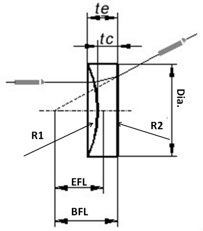 平凹透鏡是一面是球面,一面為平面的,中間也薄于兩邊。它們具有負的焦距,被用于發(fā)散一束平行光。