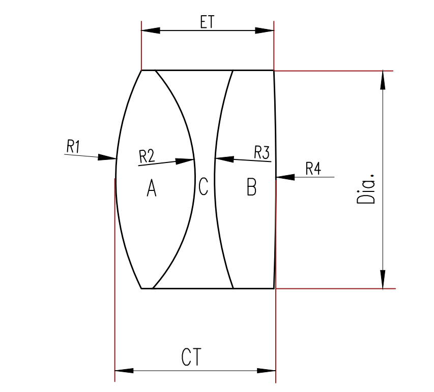 常規(guī)產(chǎn)品規(guī)格如下表,我們也可以為客戶定做各種規(guī)格的三膠合透鏡。