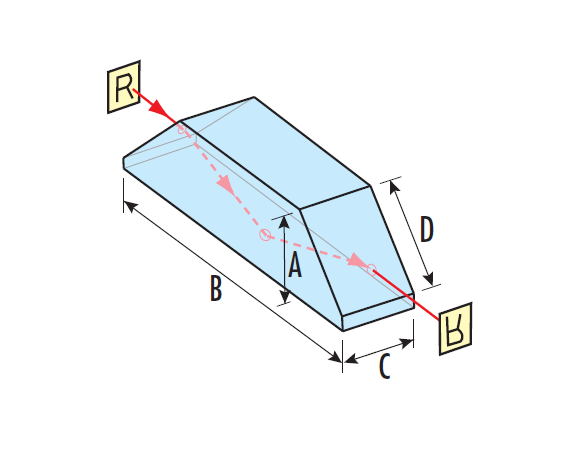道威棱鏡是一種像旋轉(zhuǎn)器。光線經(jīng)過此棱鏡后,此像被顛倒180°。另外,使此棱鏡以其光軸為軸旋轉(zhuǎn)時,像的旋轉(zhuǎn)角為棱鏡旋轉(zhuǎn)角的兩倍。